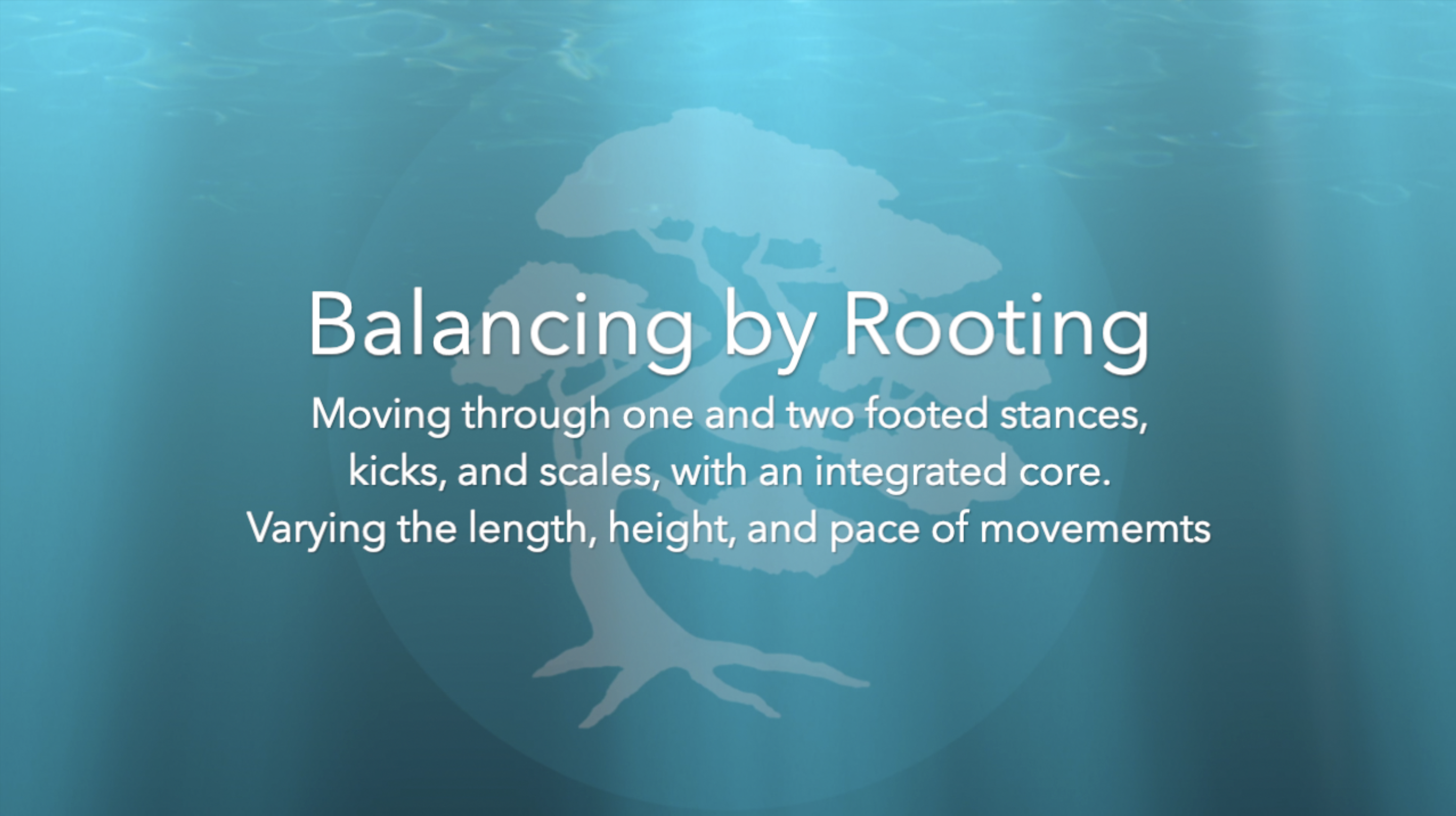 Consistent transition from Horse Stance to a one-footed stance. Rotating the spine, lengthening arm tendons and maintaining dynamic balance.