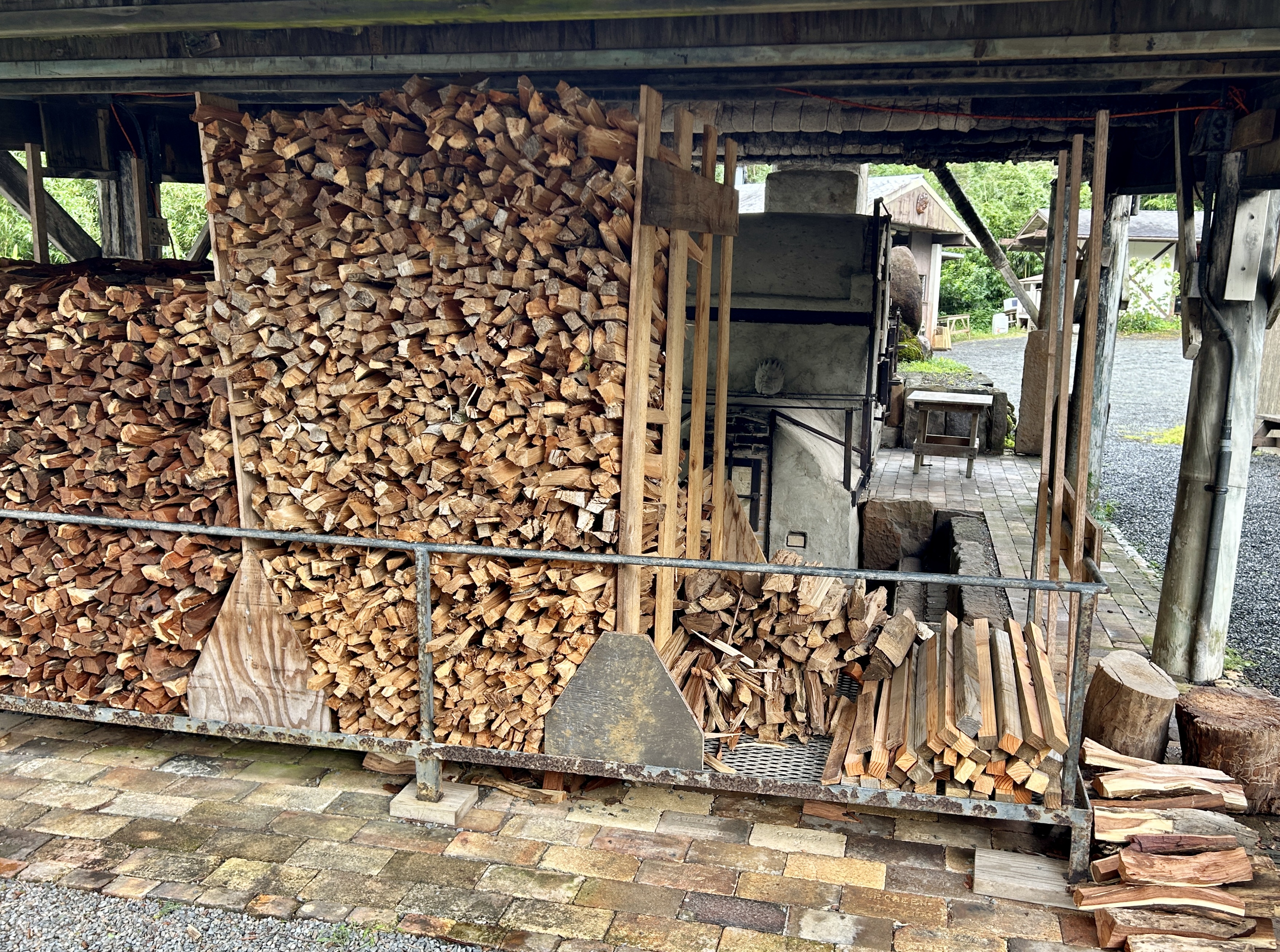 Chopping and stacking wood was part of daily practice. Fuel for the wood fire kiln
