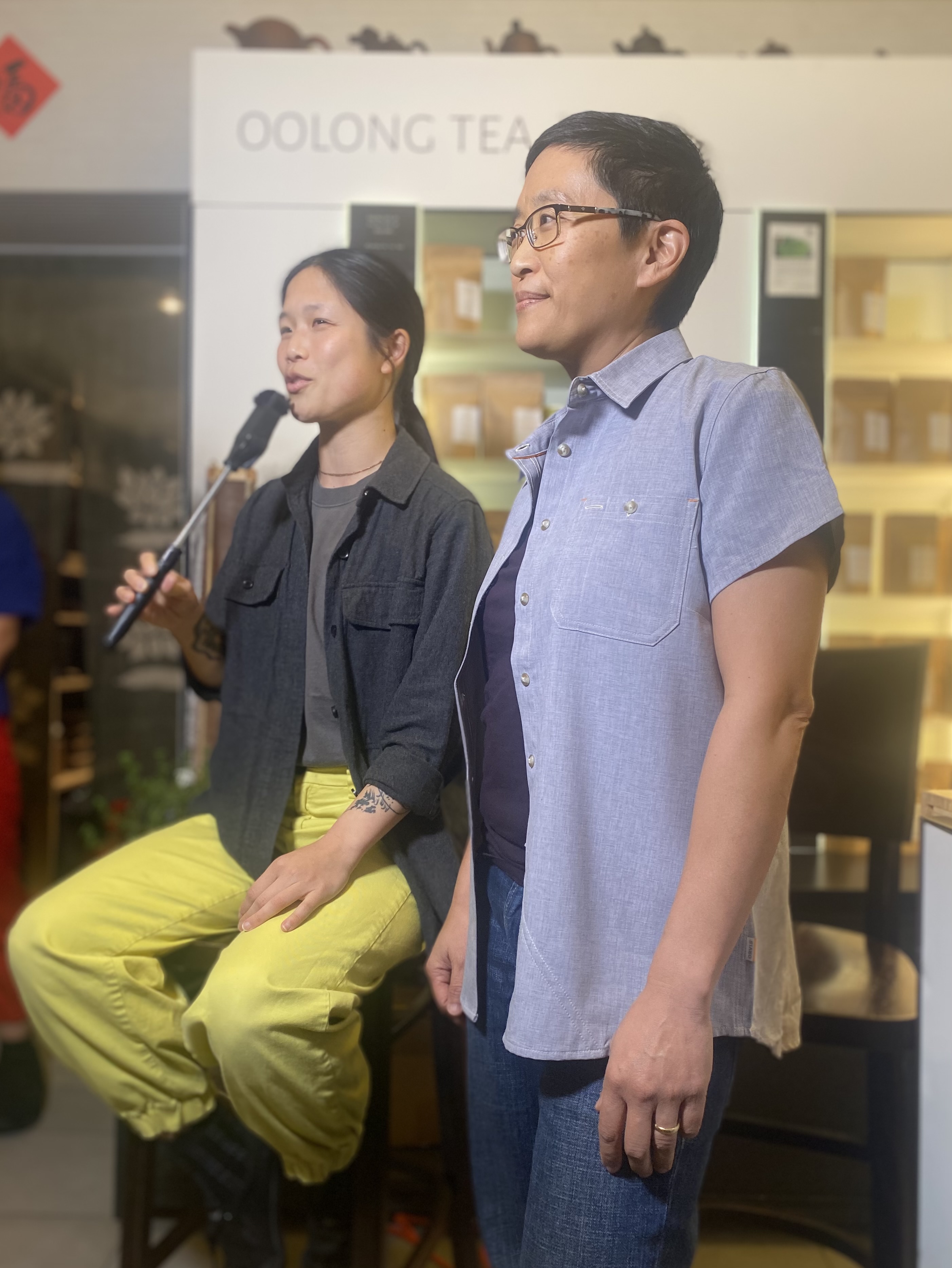 Katie Tao introducing Sally Chang at Teance Fine Teas, Berkeley, CA